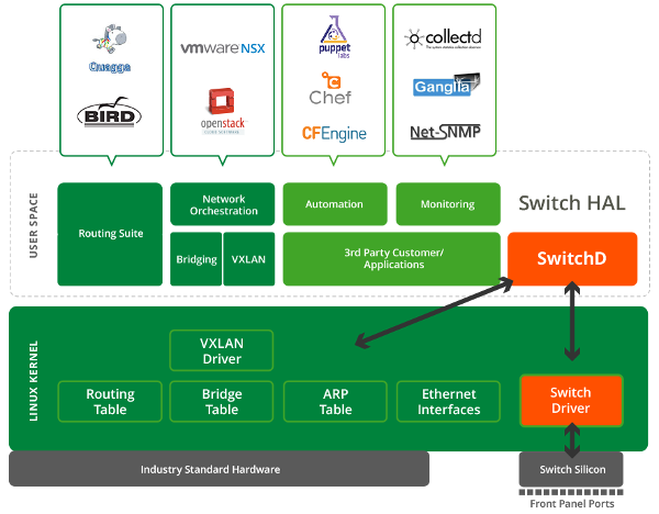 Cumulus Linux - это основанный на Debian полнофункциональный дистрибутив Linux для bare metal коммутаторов с загрузочной средой ONIE. Дистрибутив включает в себя широкий спектр функционала для эффективной работы в L2/L3 сетях, а также позволяет устанавливать ваши приложения прямо на коммутатор.