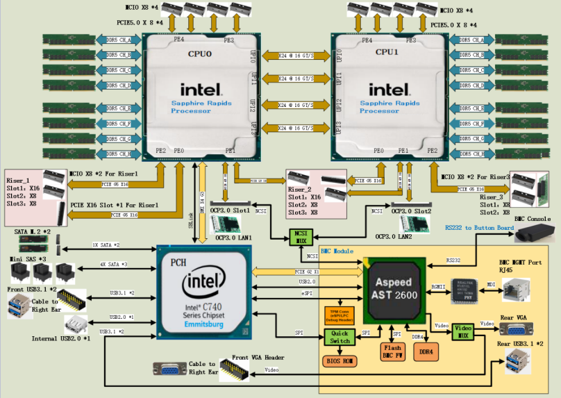 Основан на новейших Intel Xeon Scalable Gen4/Gen5 (сокет LGA4677), предлагая улучшенную энергоэффективность и производительность.