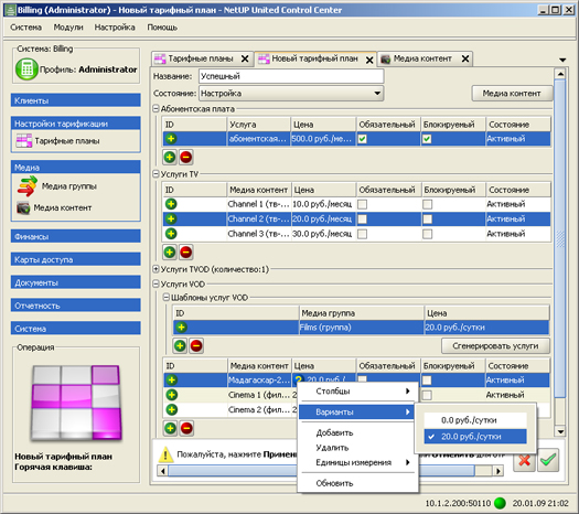 NetUP IPTV Billing System - настройка нового тарифного плана.