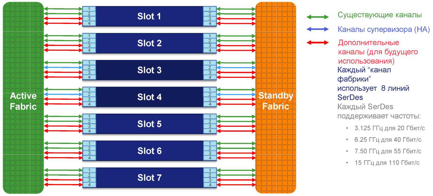 | Пропускная способность | 880 Gbps на слот |