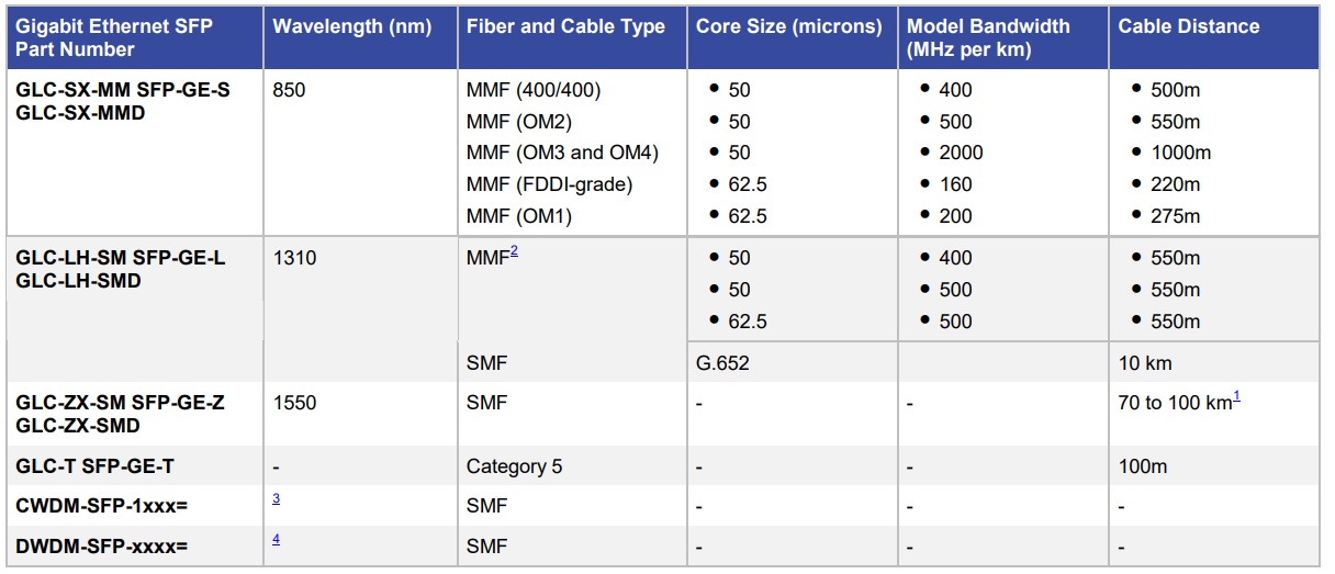 Поддерживаемый тип интерфейсов модульного коммутатораИнтерфейсы 1000BaseX SFP