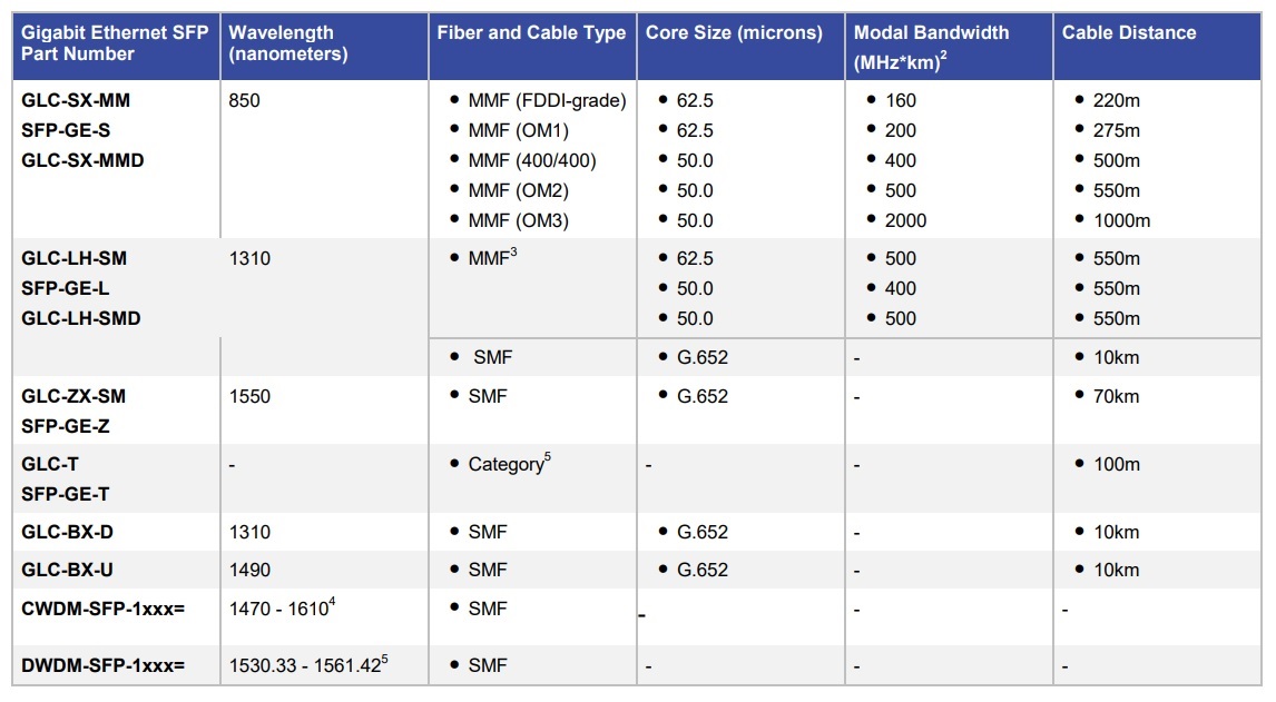 Поддерживаемый тип интерфейсов модульного коммутатораИнтерфейсы 1000BaseX SFP