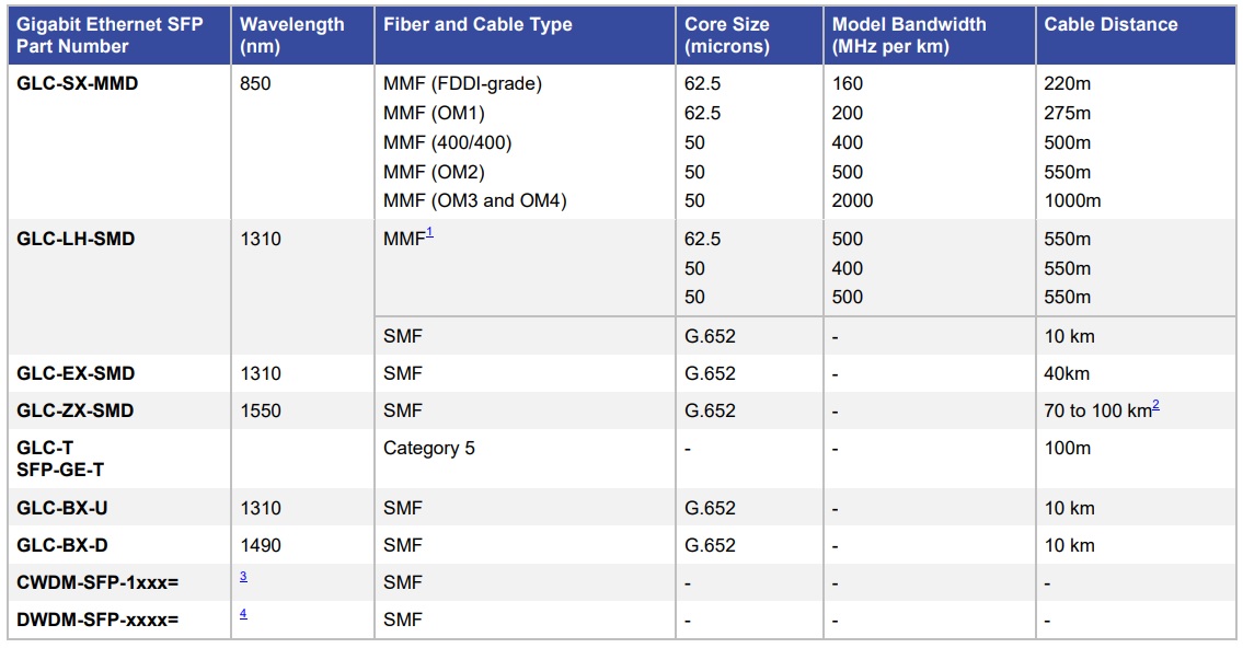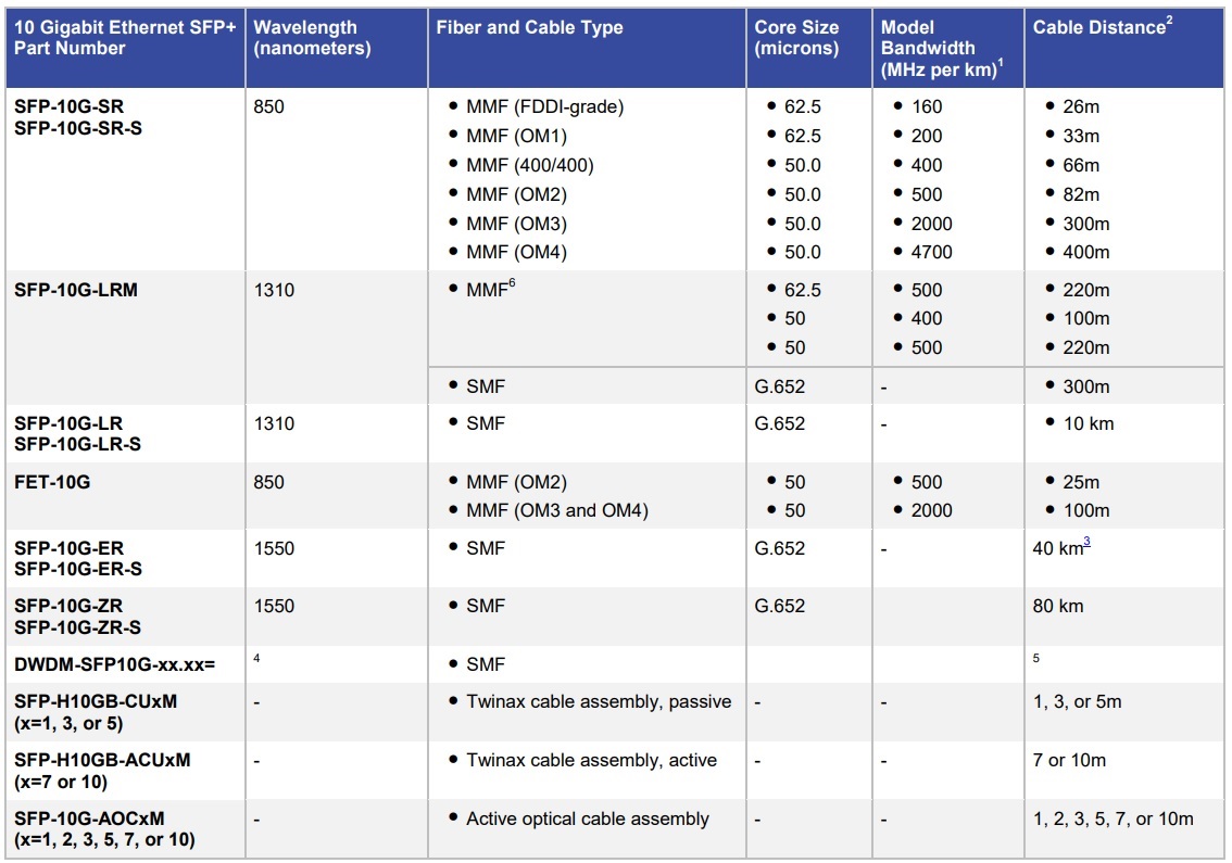 Таблица совместимости оптических модулей Cisco