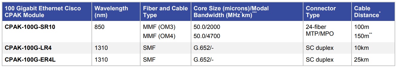 | Поддерживаемый тип интерфейсов модульного коммутатора | Интерфейсы 100GBase-X CPAK |