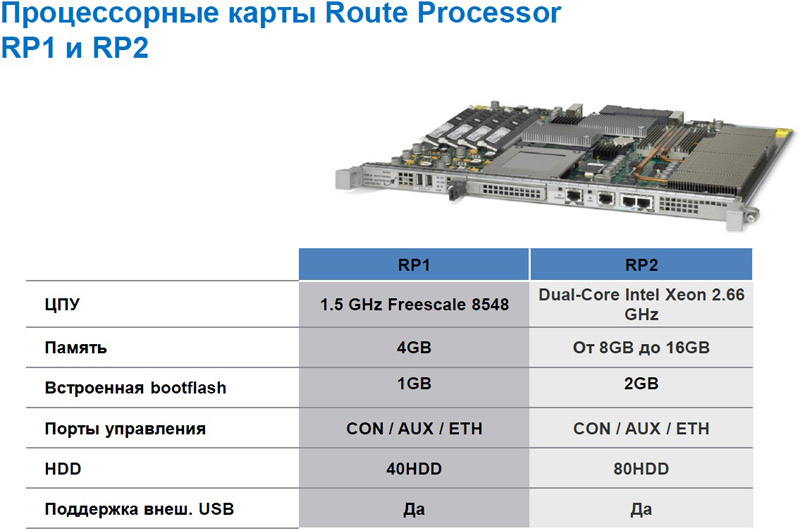 | Надёжность и доступность: | •1+1 избыточность в конфигурации с двумя RP •Горячая замена (OIR) •NSF, SSO, ISSU |