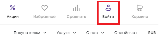 Для этого на сайте shop.nag.ru в верхнем правом углу нужно нажать на иконку "Войти".