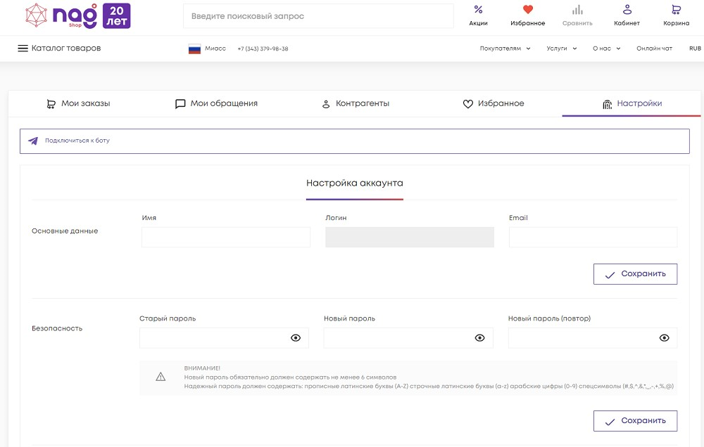 Затем подключите телеграмм бота, для этого нажмите на кнопку "Подключиться к боту" или найдите нашего бота в Телеграмм @NagSalesBot.