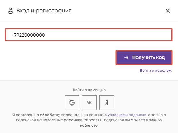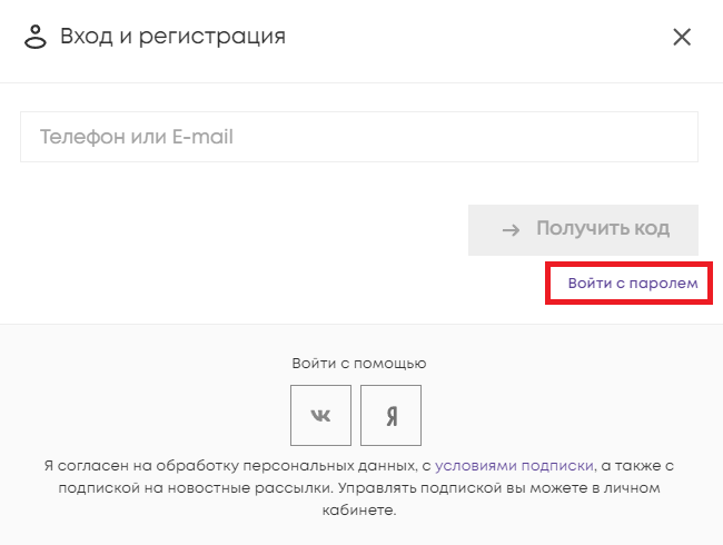 Если ранее к вашему аккаунту был привязан номер телефона, вы также можете с помощью него авторизоваться в своем личном кабинете.