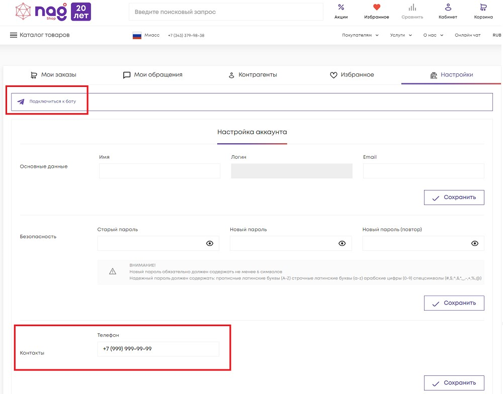 В разделе "Настройки"личного кабинета добавьте свой номер телефона.