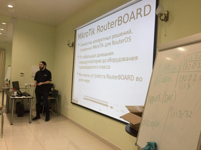 "В плане технических навыков на этом тренинге собрались люди разного уровня. Кто-то в первый раз сталкивается с продукцией MikroTik здесь, а кто-то – более опытен. Поэтому приходится находить такой подход, чтобы интересно было и новичкам и продвинутым пользователям.